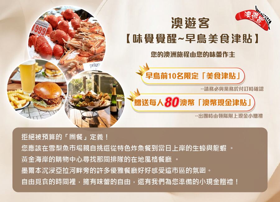 【本行程為「聯營團體」,為多家旅行社聯合共同出團。】出團名稱為「澳遊客」。